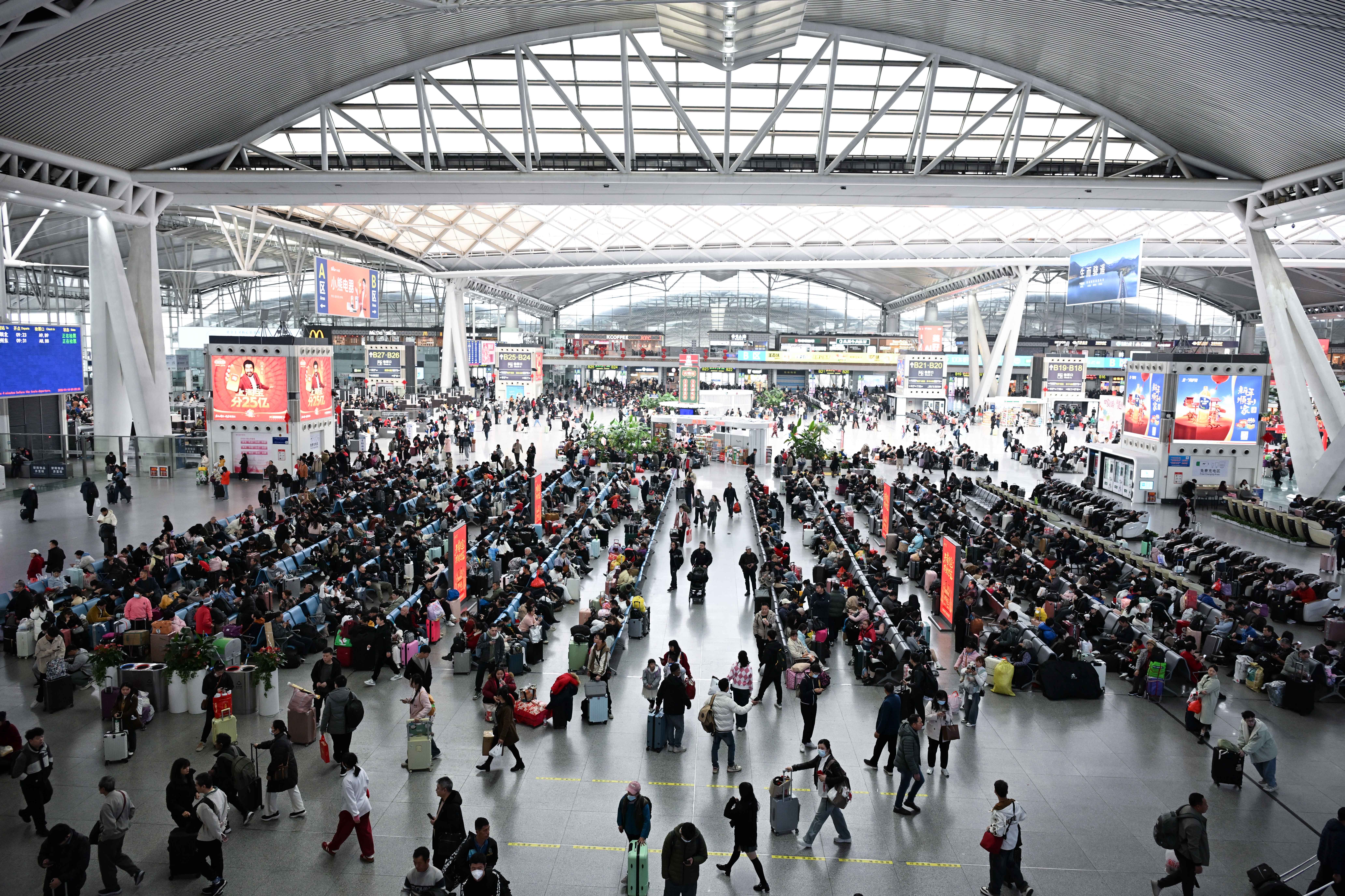 →图为2025年1月14日拍摄的广州南站候车大厅。